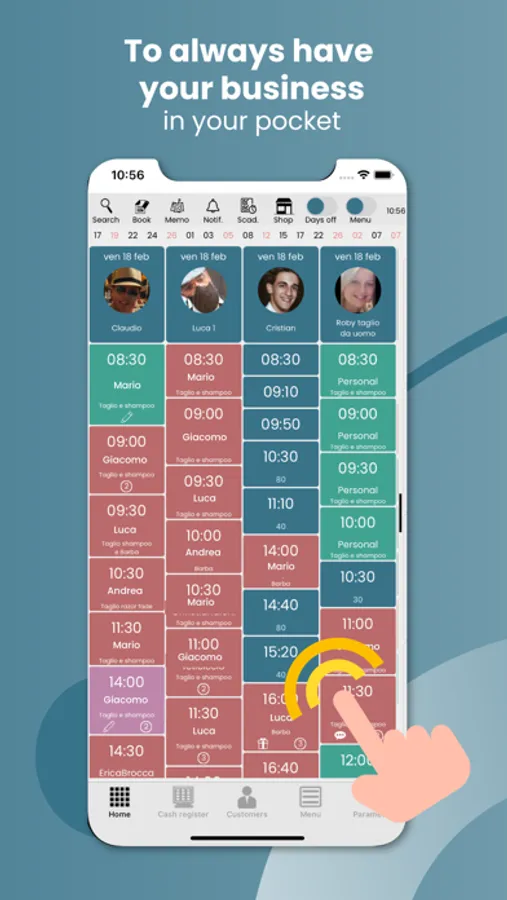 BookApp Business allows your customers to book effortlessly and allows you to work without always receiving phone calls. It's simple: download the management system, sign up and follow the steps needed. Then you'll be ready to receive appointments anywhere, via PC, tablet or smartphone!