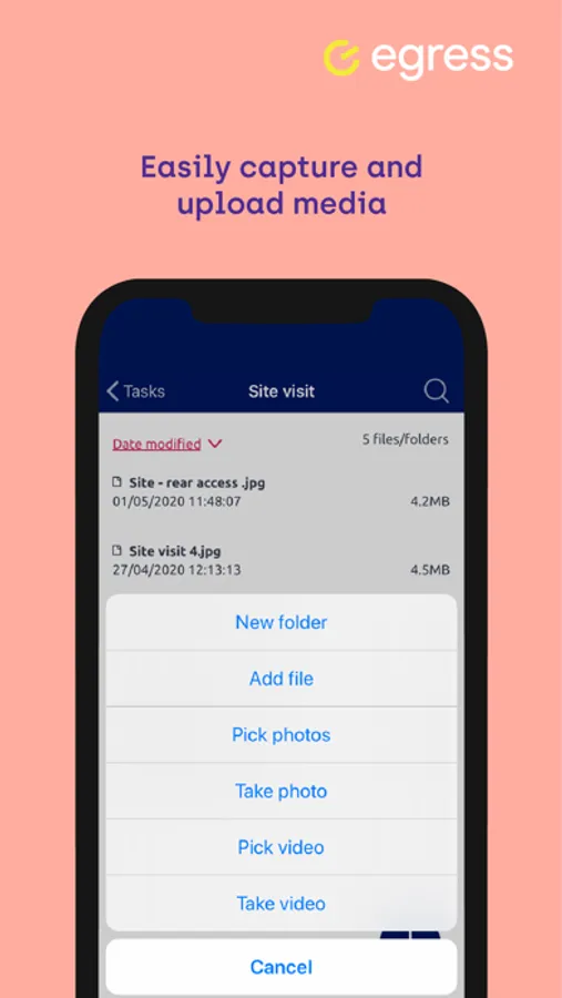 Use the Egress Secure Workspace for Mobile app to securely capture and upload files to your Secure Workspace wherever you are.