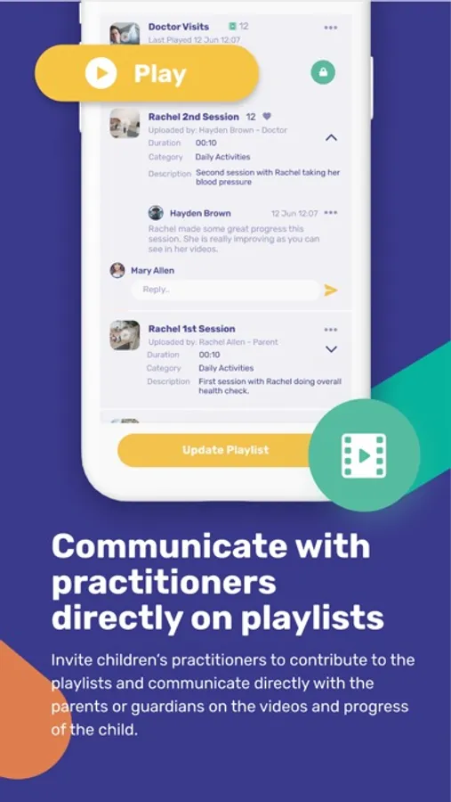 As a practitioner you can view your clients and see all requests received. View your client playlist’s that you have shared with the client's parents. Upload videos of each session and send to parents and make comments and communicate with parents. Connect with clients' parents by replying to comments about uploaded video content.