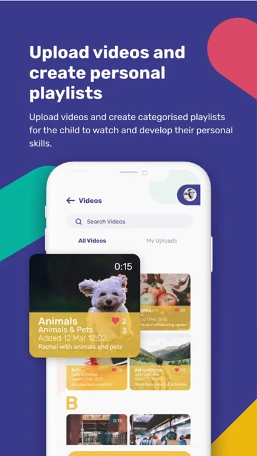Upload your child’s favourite videos to the app and create a playlist for your child to watch. Receive videos from external supports such as therapists, school teachers and support workers which keep you informed on what your child is doing outside the home. The Videos will remain private within the app community unless by choice you make them public to every user.