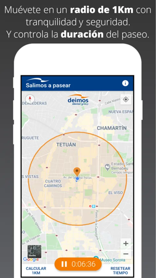 It helps you to calculate and display a radius of 1 km on a map and, optionally, allows you to consult the duration of the walk.