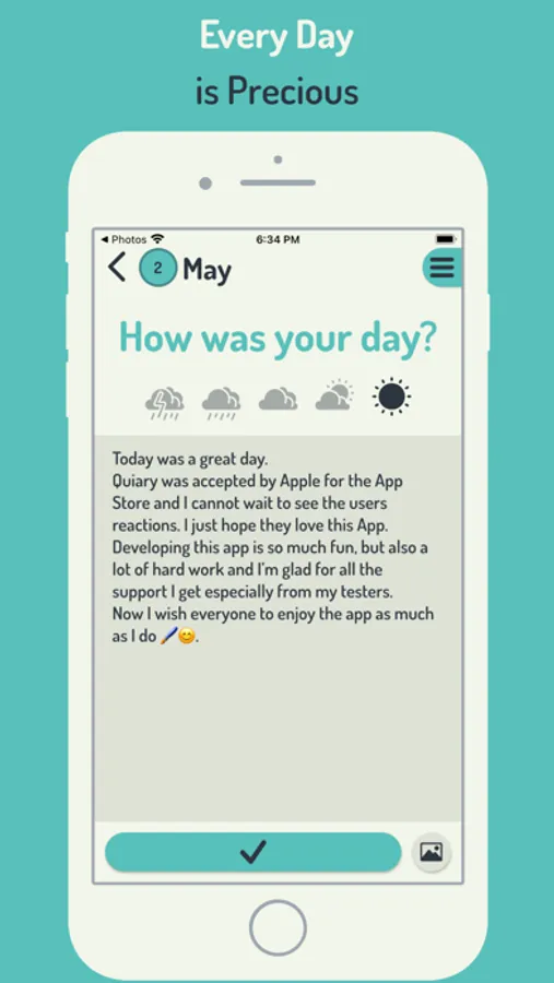 Sadly our memory is not perfect and with every day, memories tend to fade away or we alter them without even recognising. Quiary can help you not to lose your precious memories. Create one entry a day, set your mood and describe the events and your thoughts. By this way you can preserve your past and use it for the future.