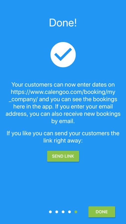 Using this app you can quickly set up a booking system to accept bookings from your customers by answering a few questions. It takes only a few minutes. Afterward, you will have a link to a website that you can send to your customers. On that website they can see where you have free appointment slots and can book them.