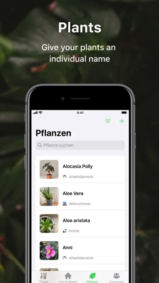 - Add your plant to a predefined room or just create as many places and rooms as you like with an individual name and a matching icon