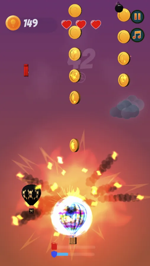 ● Increasing various hazards in each level. UFO’s, Bombs, Rockets, Meteorites etc.