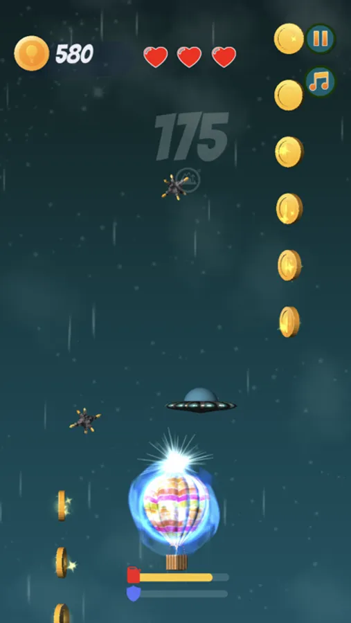 Balloon To Moon is a fun game for all ages. Travel with an Air Balloon starting in a calm city weather to deep space, Moon, Mars and beyond through thunderstorms, rockets, UFO's and more. Collect Gold Coins and Power Up's to help you on your journey to rise higher and higher.