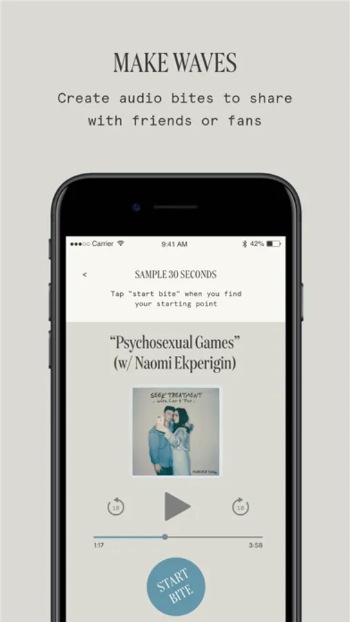 • Upload, clip, and customize audio bites to share with with your friends, followers, or fans