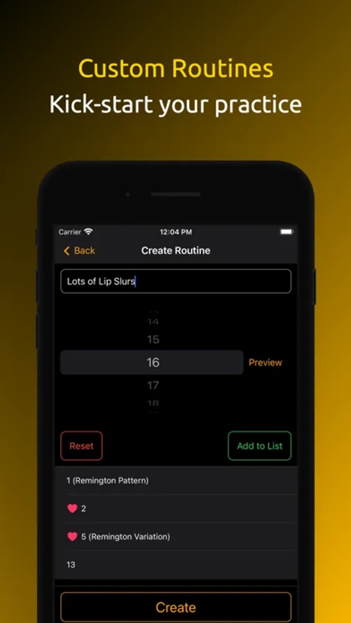 Tired of warming up to the same daily routine? Brass Routines creates a new daily warm up routine for you every day! Don't have much time? You can customize your routine as you wish, or just randomize your favorite exercises. Want to organize your own routine? You can create as many custom routines as you wish! Improve your practice with this innovative new approach to brass practice.