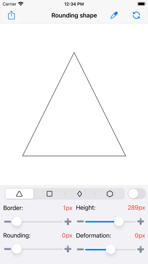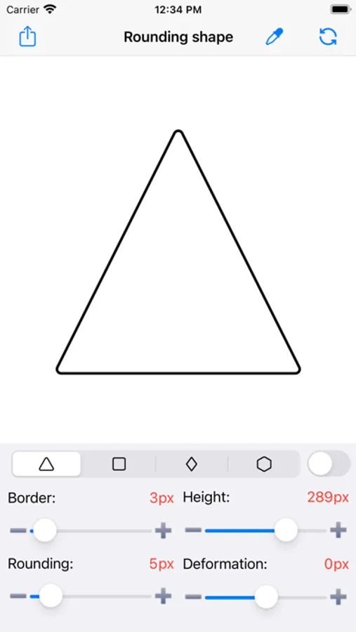 The main feature is the ability to round the corners of geomemetric figures to the desired radius, and also allows you to change the width and height of the figure and reduce or increase the thickness of the stroke, as well as select the color of the shape from the palette.