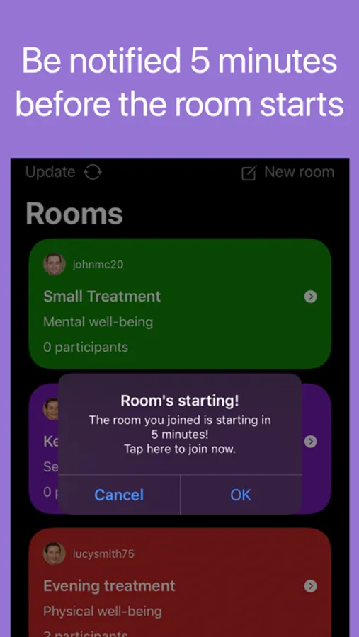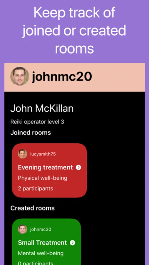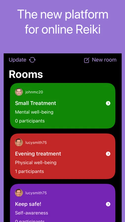 2. Reiki operators of level 2 and 3, they can create new rooms and procede with the Reiki treatment to all the participants.