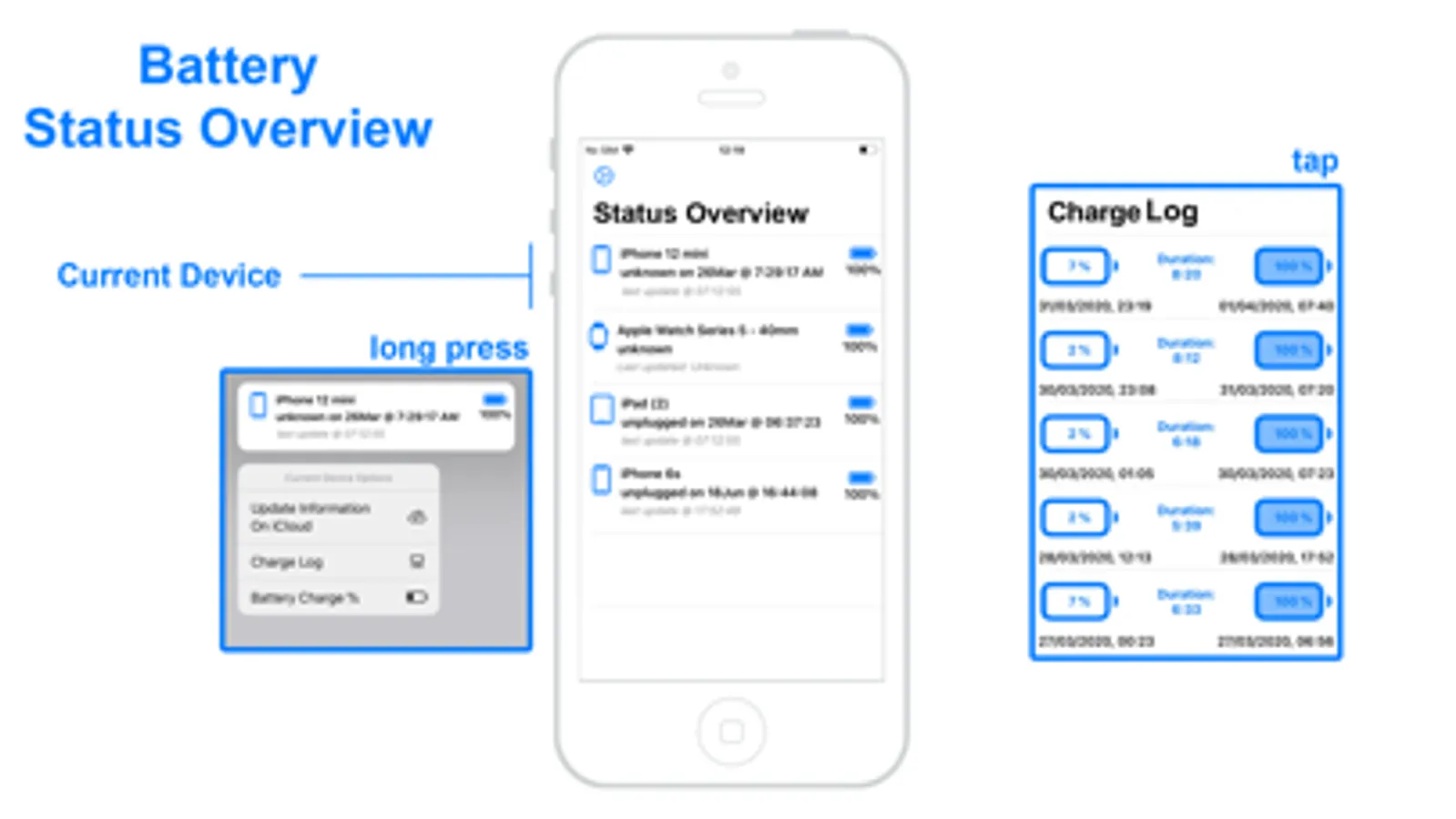 Battery Overview List is an application for users with multiple Apple devices and who wish to keep track of battery charges across all those devices.