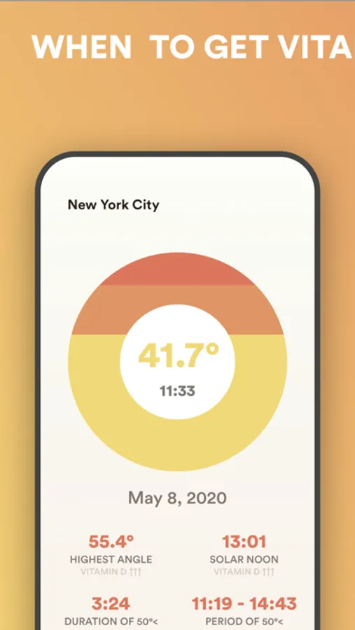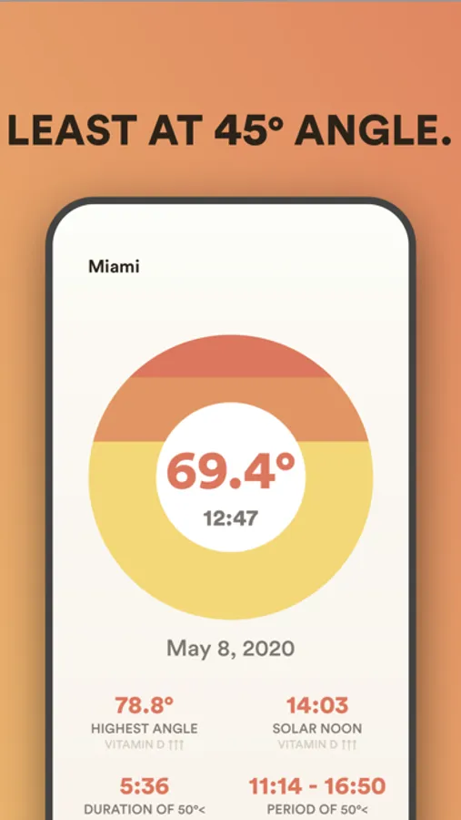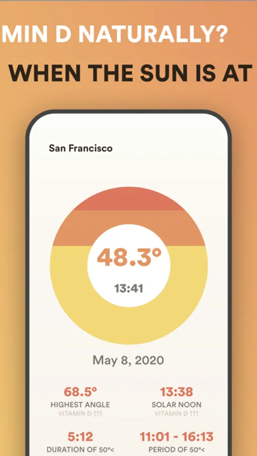 Sundee will measure sun angle, so you know when to get vitamin D from the Sun.