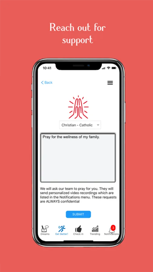Other times, you just need a little support. We have a network of prayer providers who will respond to your request with a video message. Even if you're not religious, it is so encouraging to know that someone cares. You can replay these videos at any time.