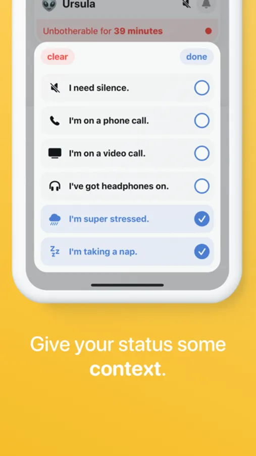 • Put your status on a timer; it'll flip automatically when time is up, and you'll get a notification reminding you to switch gears.