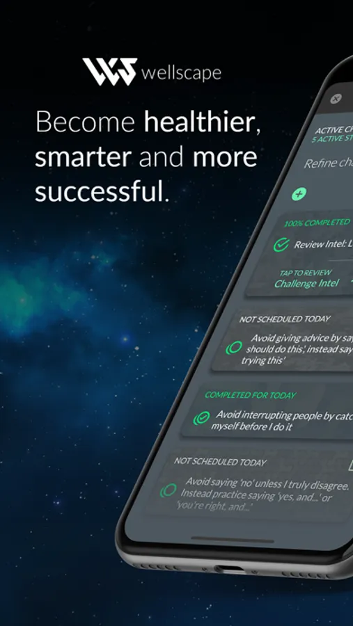 Wellscape is a digital life coaching and self-improvement platform built on the knowledge that embracing life's challenges and adversity are the best ways to grow and unlock personal potential. Everyone has the capacity to dig-deep and grind toward self-improvement. Taking ownership and facing life’s challenges head-on is truly the only way to build a healthier, more successful and fulfilling life. Through constantly evolving Challenges and Exercises, Wellscape pushes you to become a better you.