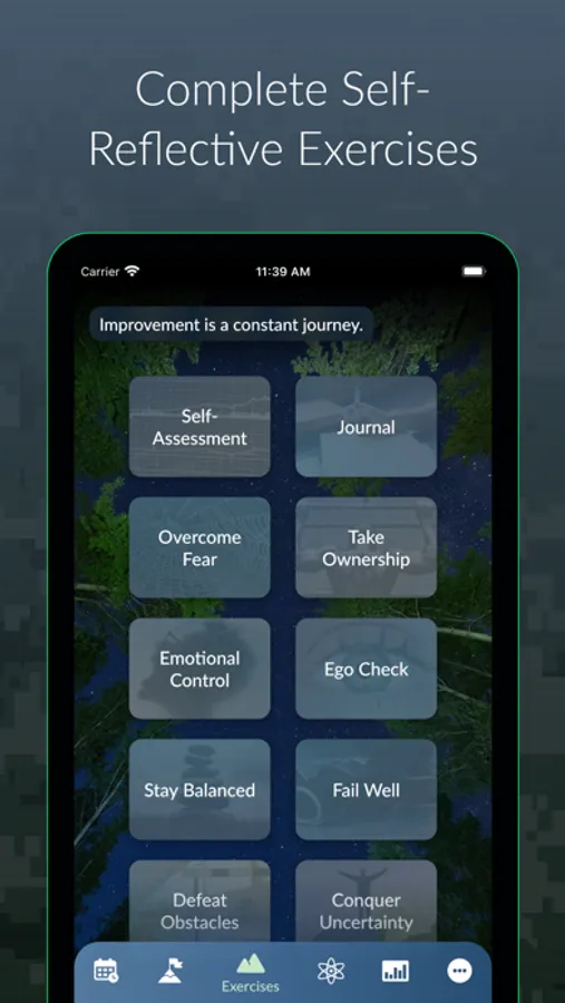 Wellscape also offers a suite of self-reflective Exercises that help you analyze and improve on situations or interactions with people around you. These Exercises can be completed either through typing your answers or recording audio responses. Examples of Exercises include: