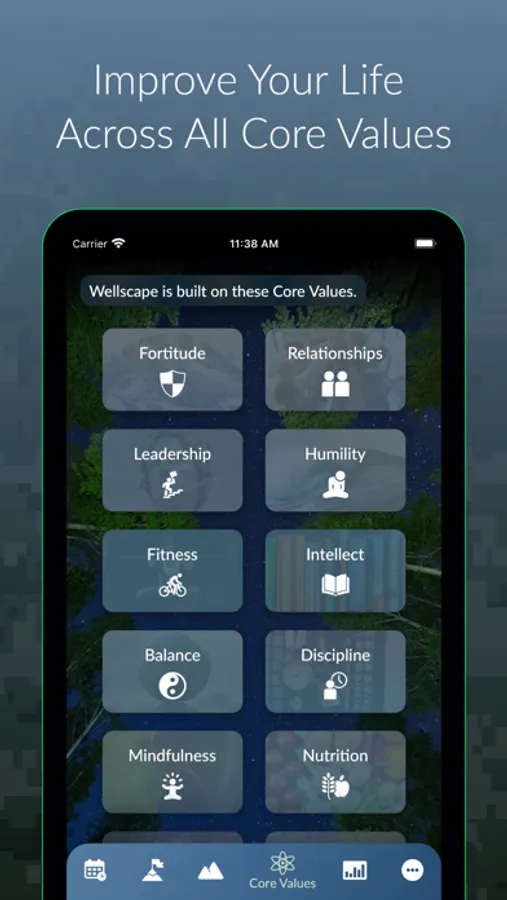Wellscape is built around 12 Core Values that represent the key aspects of personal and professional life that you need to improve in order to be successful and fulfilled:
