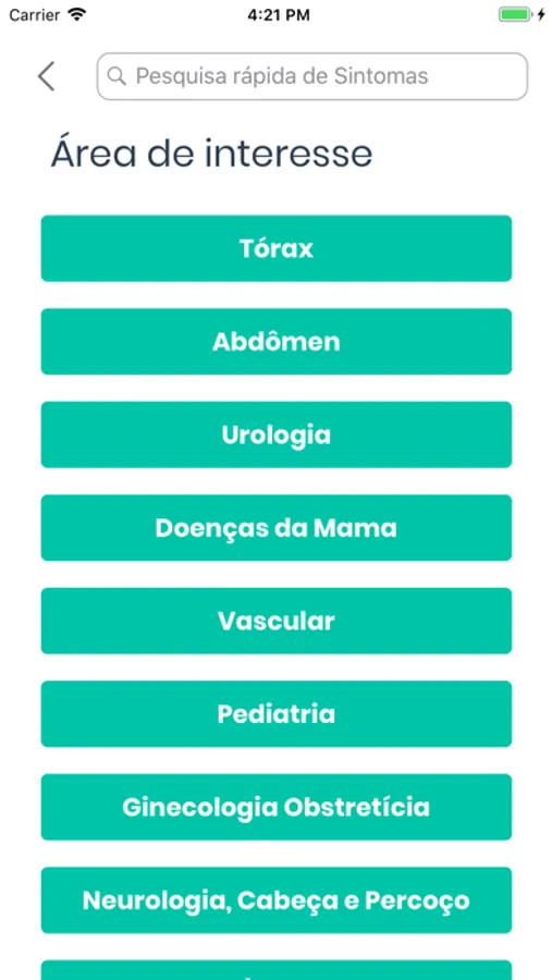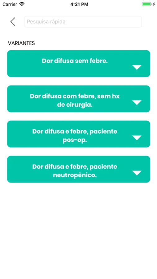 2. Selecione o sintoma ou diagnóstico mais compatível com a situação clínica.