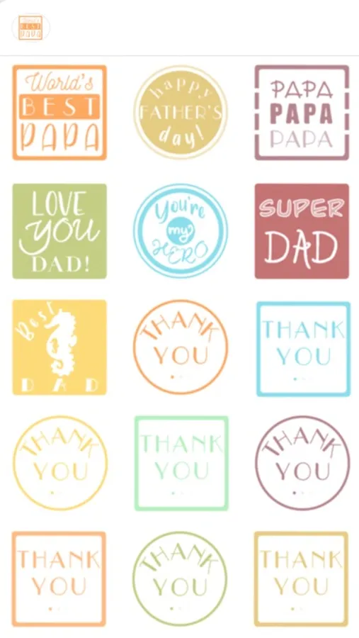 Proud of your papa? Send him your appreciation and love with these colorfully, animated stickers. ~ There's a surprise inside each "Thank you..." message.