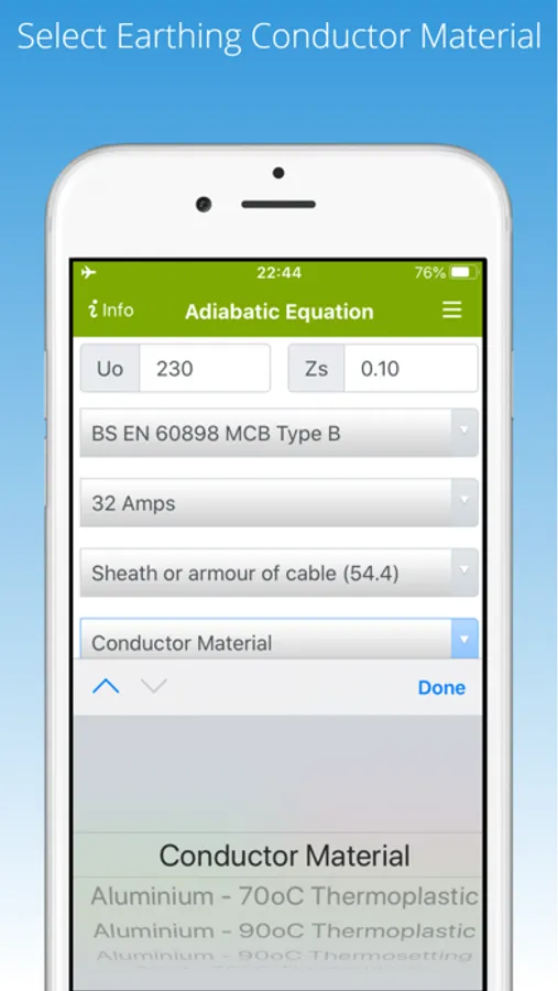 Adiabatic Equation for calculating the minimum cpc (circuit protective conductor) and earth minimum csa sizes of earthing conductors.