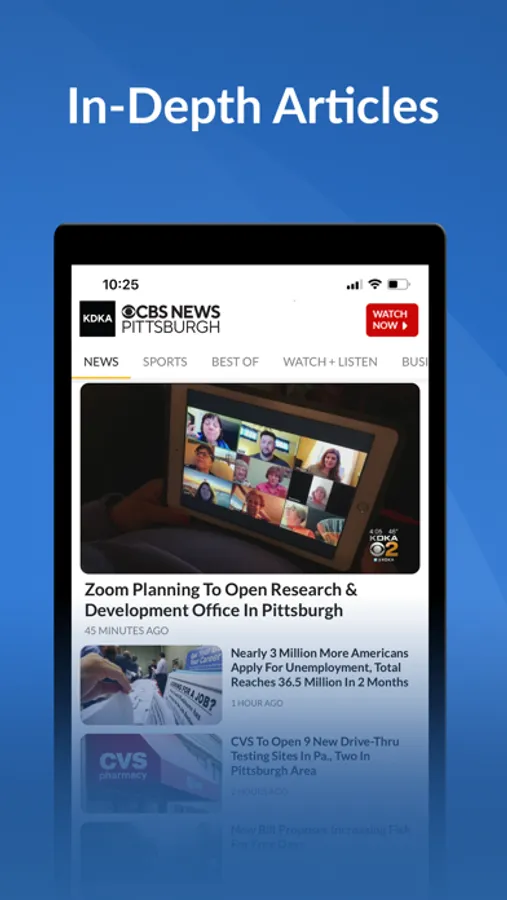 The KDKA / CBS Pittsburgh app brings you the latest news, sports, weather and lifestyle content from the Pittsburgh area. In addition the CBSN Pittsburgh stream is always available.