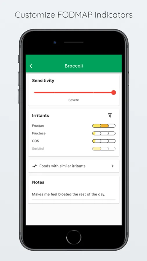 • Customize FODMAP indicators by hiding FODMAPs you aren't sensitive to