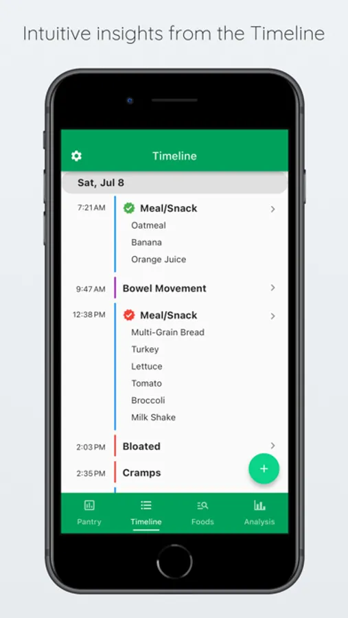 The Timeline logs your food, poop, and symptoms