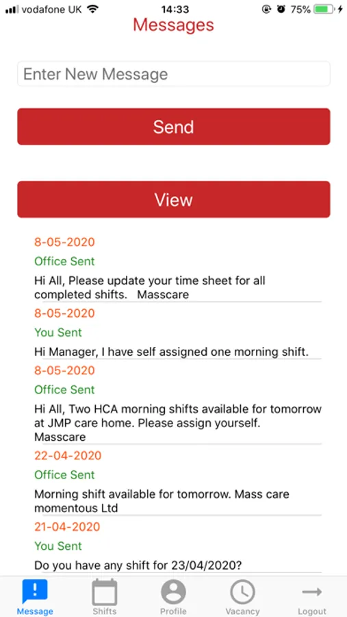 Install Masscare 2.9 to get instant alerts from your agency about vacancy or other messages. Assign suitable shifts yourself, view your shift details and conduct two-way communications with your agency. No cost, No calls, No time wasted. This cloud solution provides everything at your finger-tips.