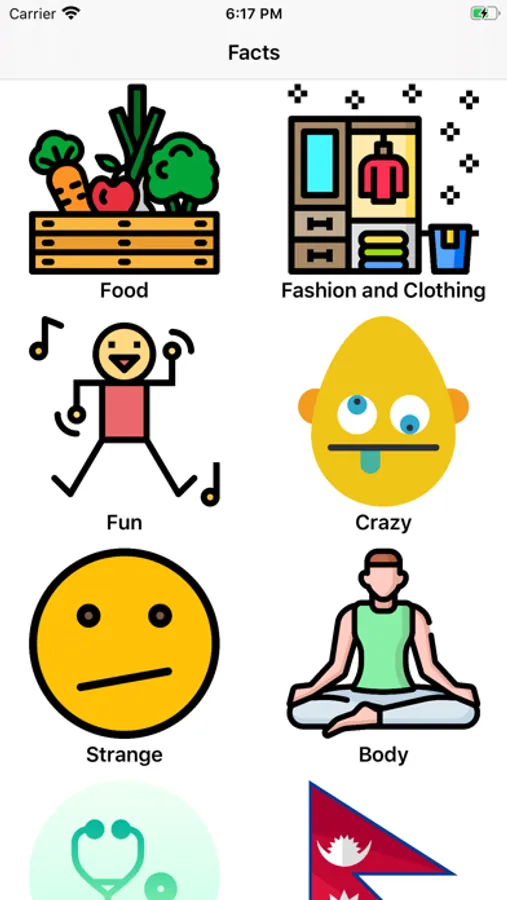 This app is all about facts, currently it have earth facts, body facts, fashion and clothing facts, food facts, strange facts, fun facts, crazy facts, random facts, space facts, health facts and nepal facts. You can play soft relaxation music and favorite any facts that will stay in the favorite section.