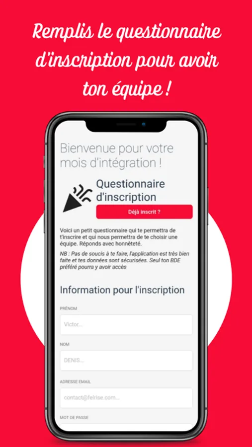 Inscris toi et attend que le BDE t'attribue une équipe. Une fois ton équipe attribué, tu pourras réaliser les nombreux défis qu'on te propose pour cette intégration, ainsi que les défis d'équipe !