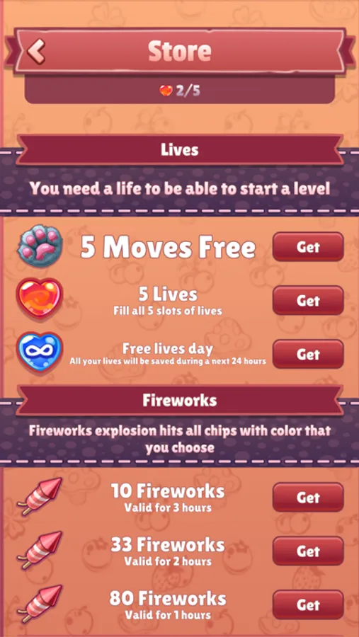 THE FRUITY CRUSH game is completely free! You can get booster or bomb by winning levels or by showing short ads.