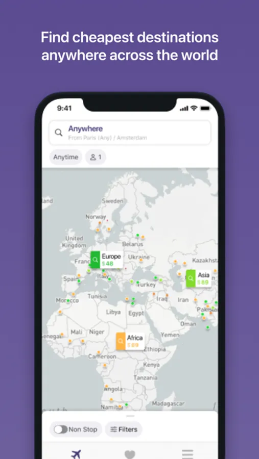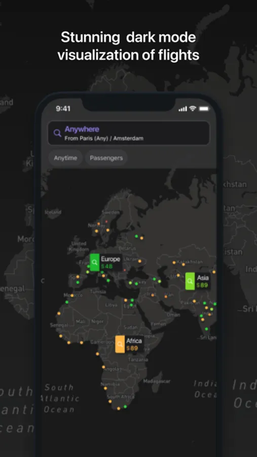 Escape visualizes the cheapest airfares to every destination in the world from your airport on your travel dates.