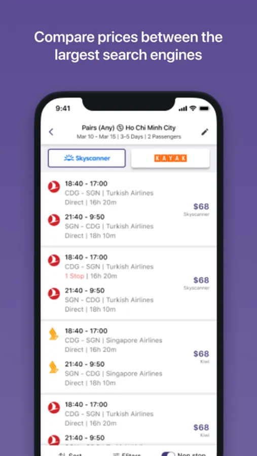 Finally, it shows you fares from every major travel agent and airline to get you the cheapest possible deal!