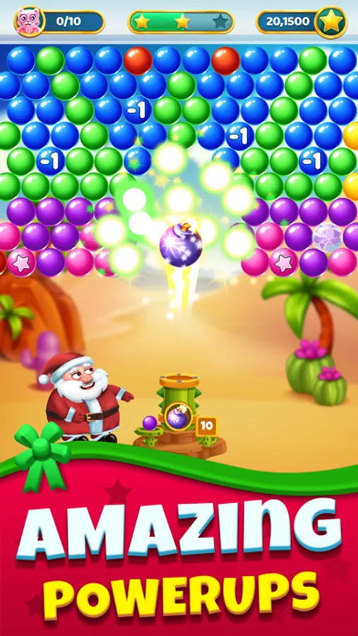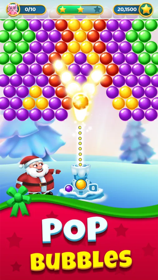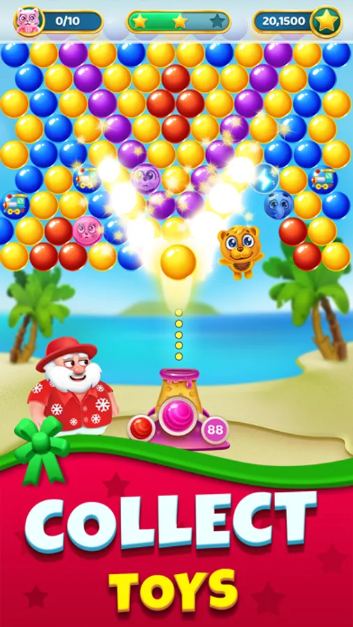 Travel throughout the world as Santa and collect toys trapped in colorful bubbles! Face Santa’s adversaries as they try to stop you from getting gifts for all the good boys and girls on Christmas eve!