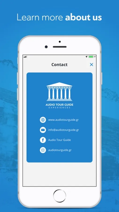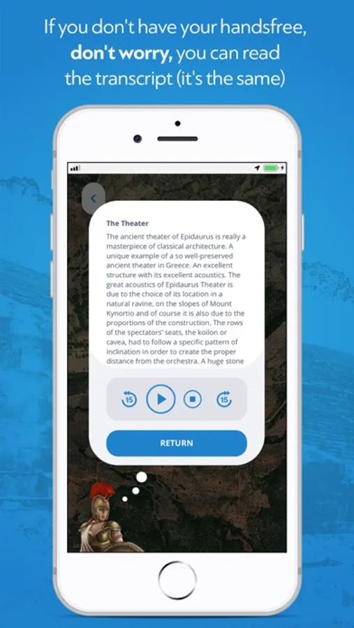 Audio Tour Guide Experiences guides you through archaeological sites, giving you the opportunity to choose among 7 different languages (Greek, English, French, German, Spanish, Italian, Russian).