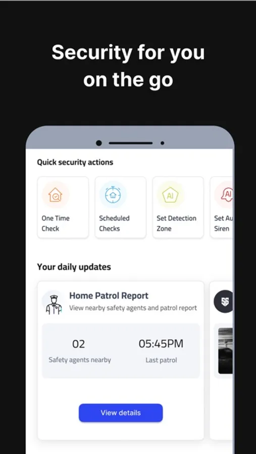 - Smart Eye - 56 Secure keeps track of your AI security camera alerts and dispatches a patrol guard to your home location incase of any intrusion without you needing to press SOS on our app.