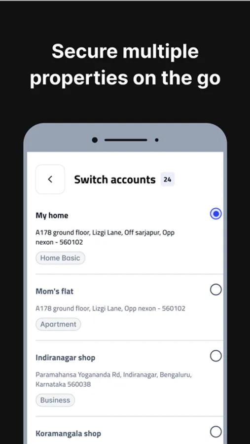 - Multi-property protection - Seamlessly manage the security of multiple properties across Bengaluru through one app..
