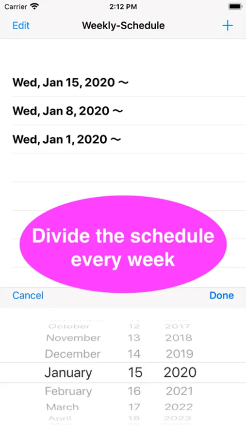 - Tap the date added to the list to move to the screen for entering the weekly schedule.