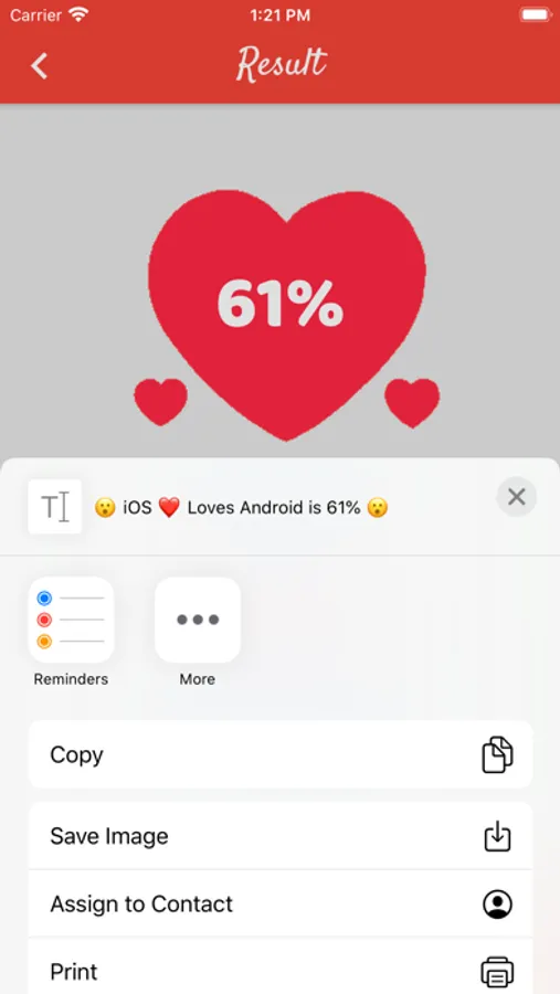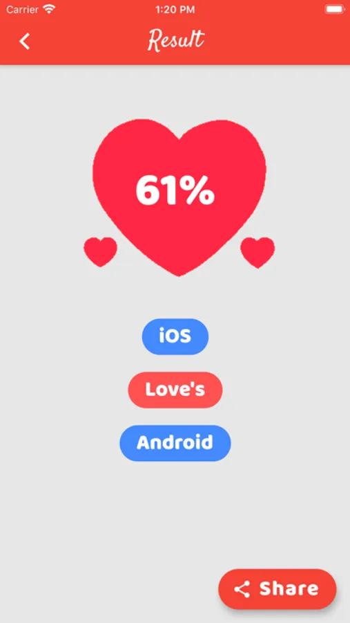 This application calculates the percentage value for the relationship between couples, friends, relatives and pests. You can also share the result with friends and family.