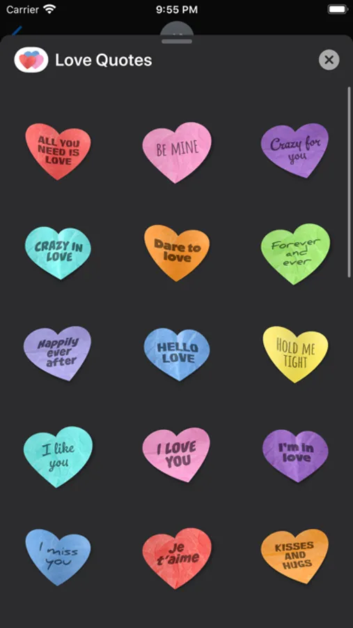 Easily create beautiful messages showing how much you care with Love Quotes stickers!