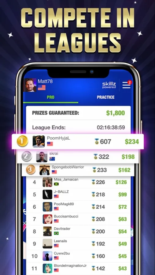 Skill Shot Darts is powered by Skillz, the world-leading eSport platform for everyone. This means you can win real cash prizes and withdraw them anytime directly from within the app.