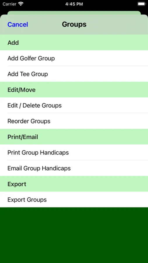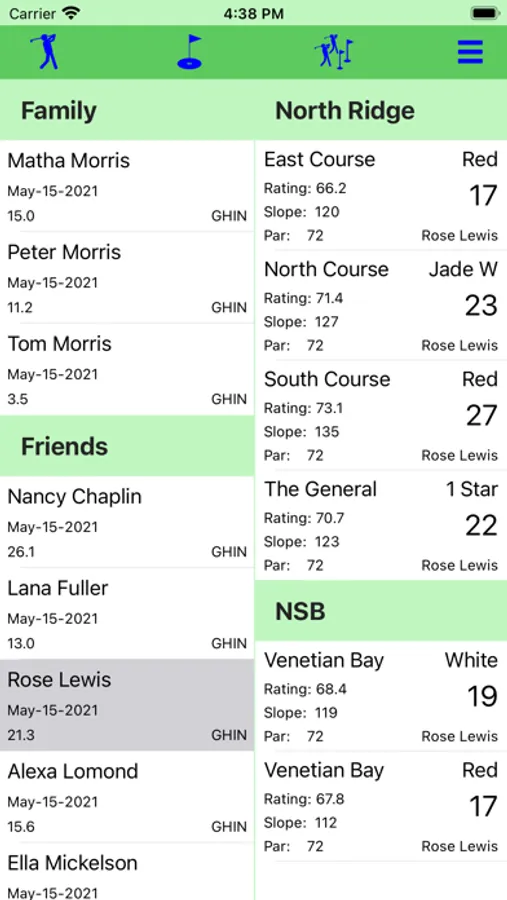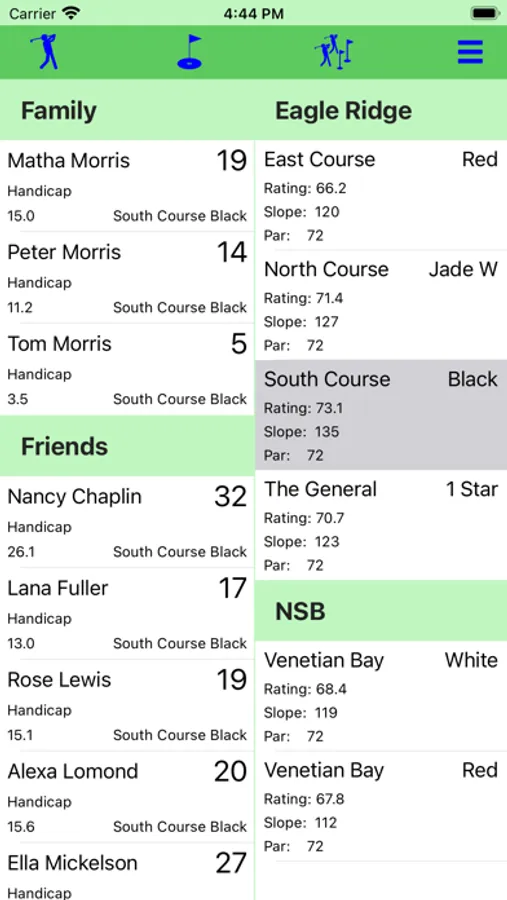 Friends, family or league player groups can be setup to get rapid access to tee handicaps. Golf course tees can also be organized in groups of favorites.
