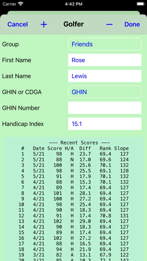 Your golfer data is now saved locally on your device as well as on your iCloud Drive, making your data available anywhere with good or weak connections. This latest version has several improvements helping you get quick access to handicaps on the golf course, while still allowing you to use the same data on your other iCloud connected devices when you need to review at home.