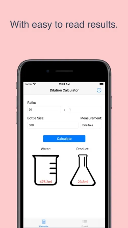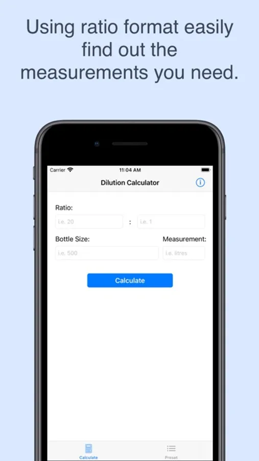 Simple to use app to help calculate any dilution ratio, simply enter your ratio and bottle size for accurate instant results.