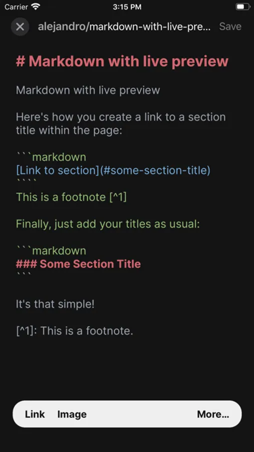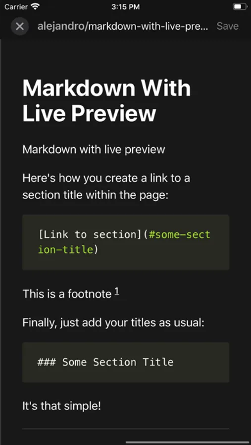 Live Markdown previews allow you to see the final result in real-time as you type.