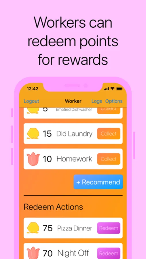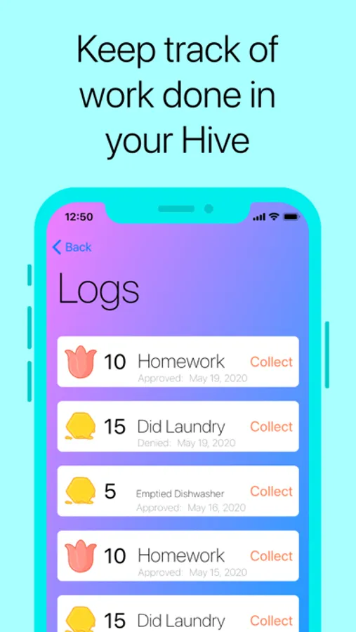 This app uses motivation and relationships between two users to keep track of "IOU" points in the form of in-app Honeycombs, Coins, and Flowers. The Queen has control of what activities a Worker can perform, and what rewards a Worker can redeem. The Queen also is responsible for approving all of the Worker's requests for doing actions.