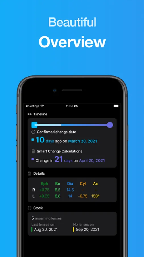 Lensy automates everything in the best possible way. The change date and the number of remaining lenses automatically update without any interaction.
