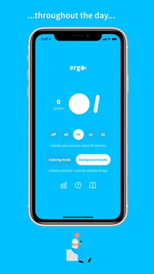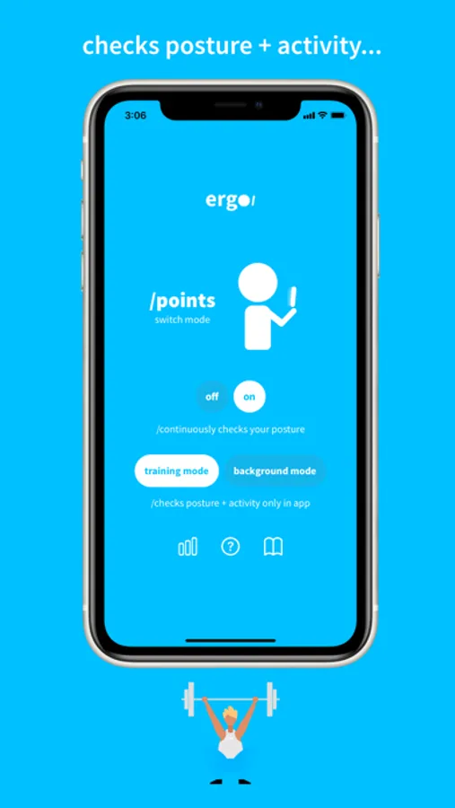 ergo/ uses your iPhone's built-in sensors to determine its orientation and sends a notification when your posture should improve. You can also check your posture + daily activity in the background with location services enabled, and ergo/ will send a notification when you should get moving!