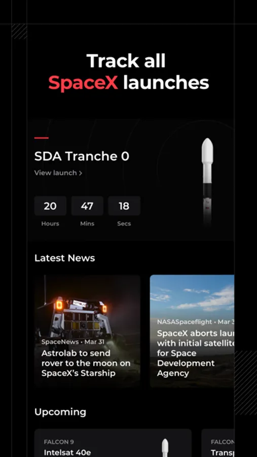 - Track upcoming SpaceX launches with our beautiful live countdown timer