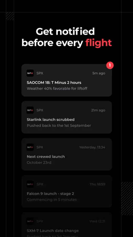 - Watch all future and past launch SpaceX livestreams right from within the app